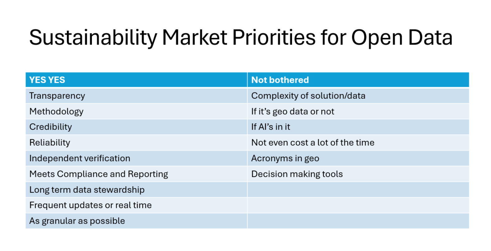 She also highlighted some really interesting priorities for open data from her experience in the sustainability market, and other highly regulated fields - they are not what you might expect: